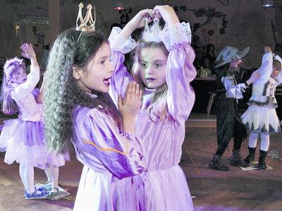 Die beiden Prinzessinnen Teresa (re.) und Celina tanzen anmutig über das Faschingsparkett in Ullersdorf.Foto: Michael Trapp